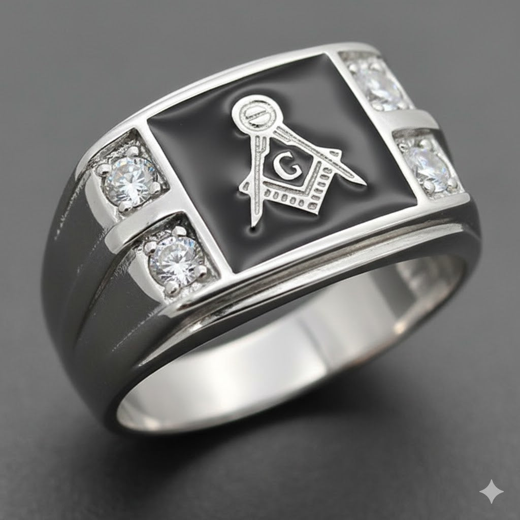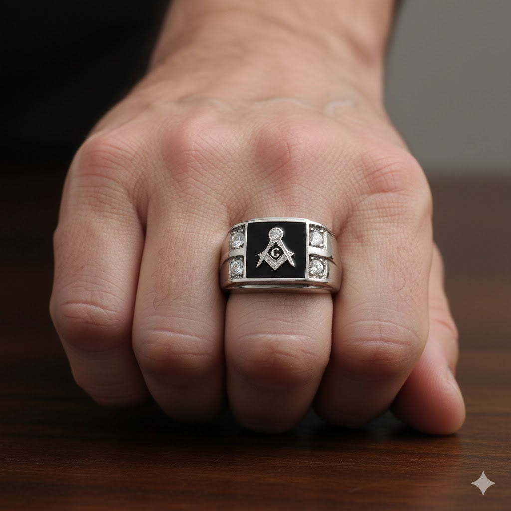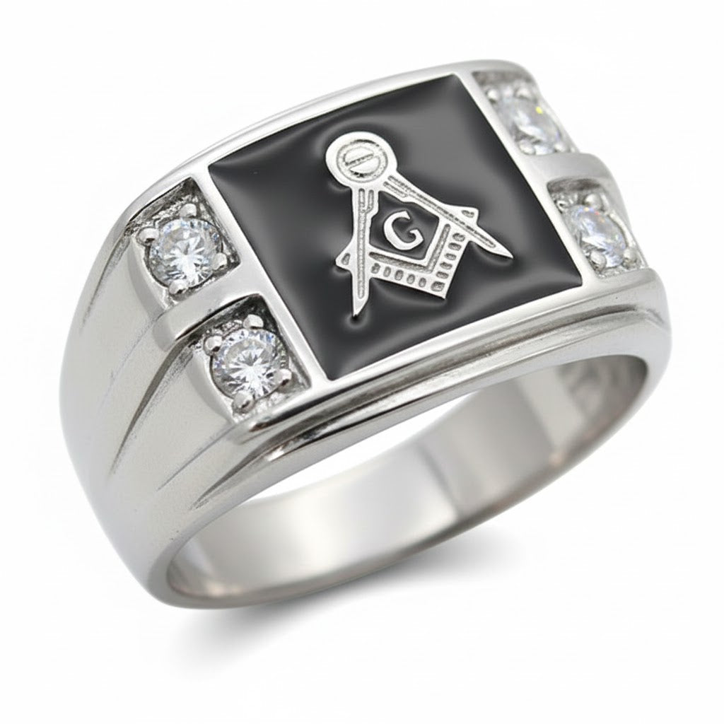 316L Stainless Steel Mason Mens Onyx & 4 CZ Ring