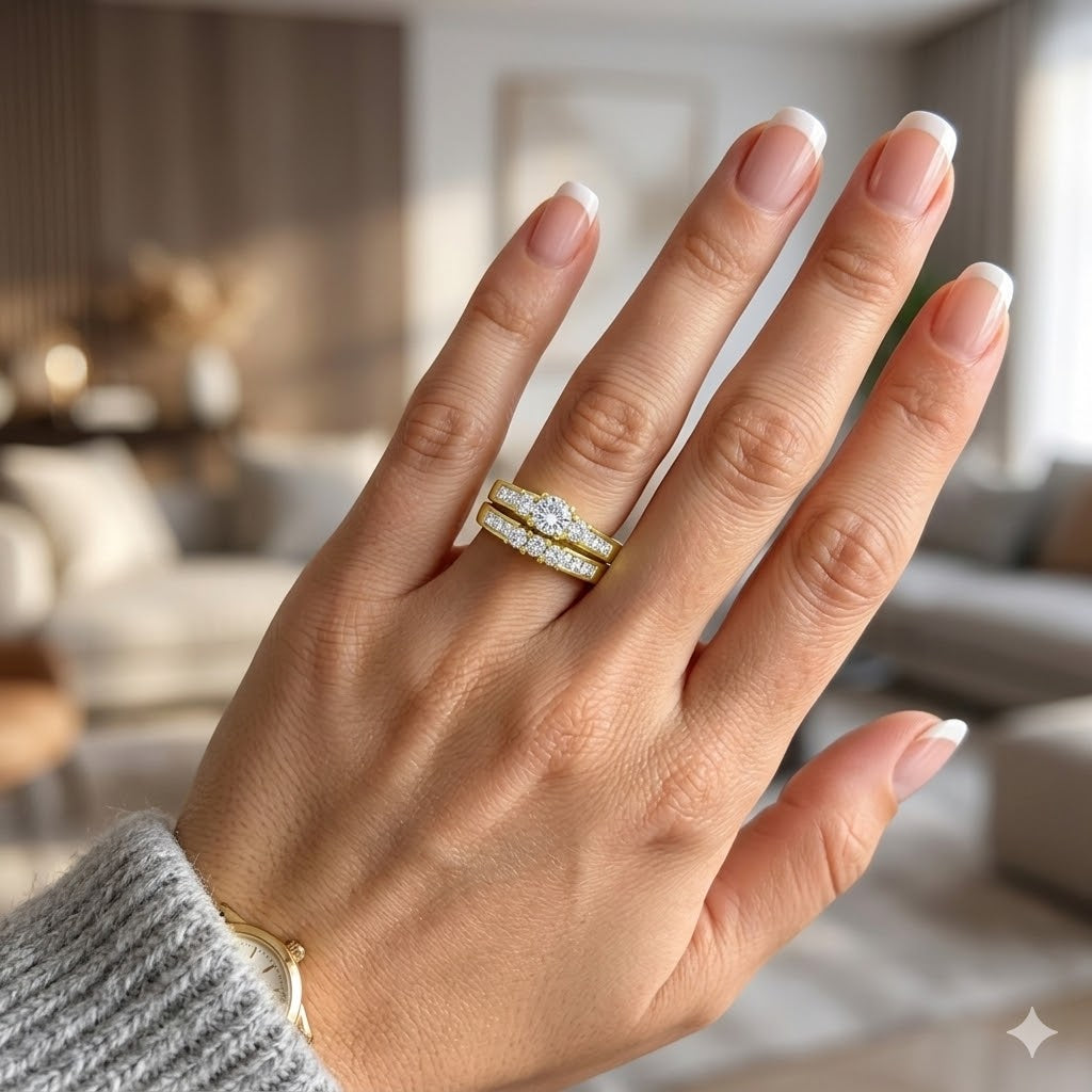 His Hers Couples Ring Set 14K Gold Plated Small Round CZ Wedding Ring Set Mens Matching Gold Plated Band